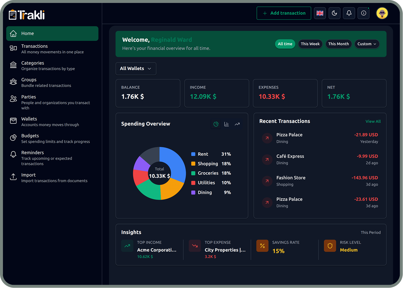 Trakli is a community-driven project, and we welcome contributions from developers of all skill levels. Help us build the best open-source income tracking app! The hosted version also offers API access and a robust synchronization mechanism for developers looking to integrate with Trakli.